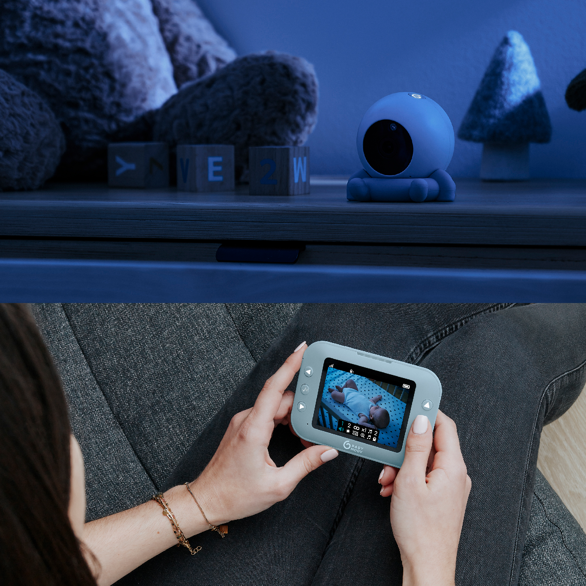 3 options d’alarmes sont disponibles : une visuelle, une sonore et un vibreur, ainsi qu’une alerte hors de portée pour être sûr de ne rien louper si bébé se réveille. Sa vision nocturne infrarouge vous permet de le voir parfaitement, même dans l’obscurité.