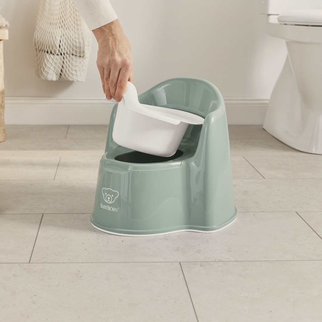 Le pot fauteuil est doté d’un pot intérieur pratique qui est facile à retirer, pour le vider et le laver ou l’essuyer.